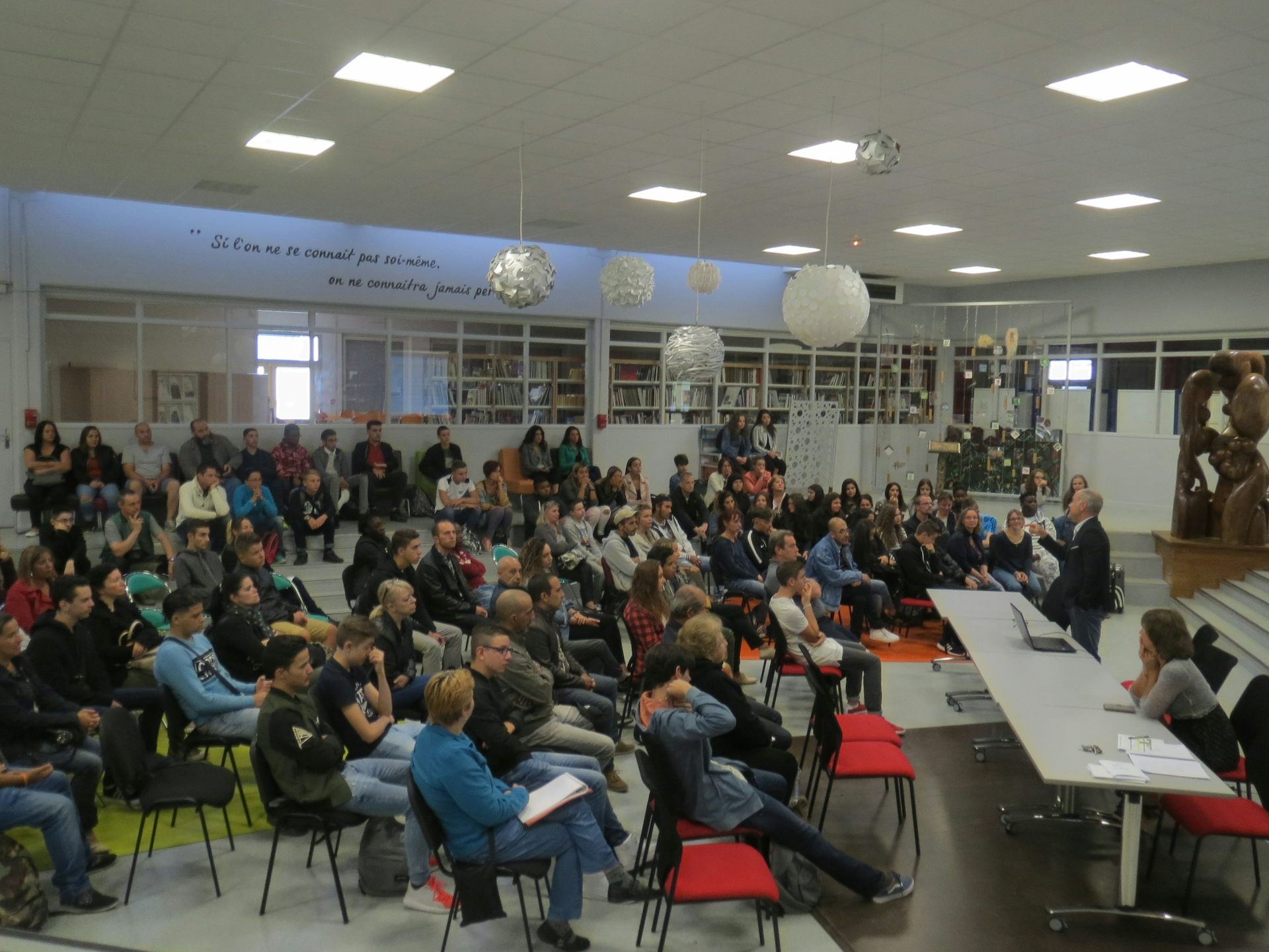 Les élèves qui arrivent au lycée sont en grande partie dans des situations scolaires particulières, non titulaires du Diplôme national du brevet (DNB) à 50 %, avec des pointes à 70 % sur certaines sections de CAP.